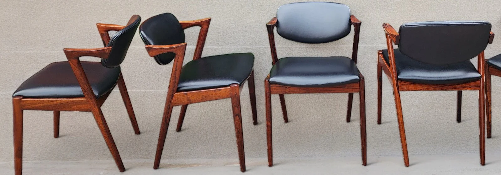 The 42 model Is one of the most desirable chairs designed by Kai Kristiansen; it comes with all the hallmarks of its design. The chairs are very comfortable and supportive with the curved sweeping backrest that pivots allowing you to sit formally or reclined.