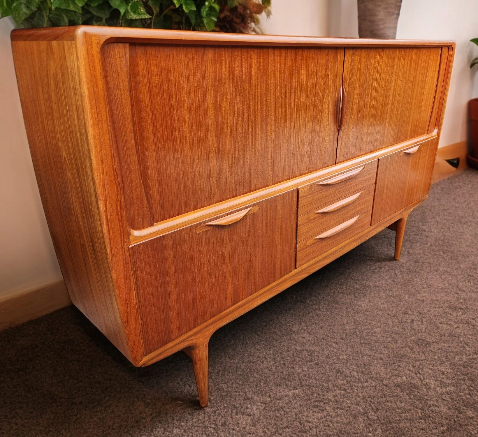 The highboard is in excellent vintage condition with only a few minor scratches and slight flaws. It has been cleaned and polished and is ready for a new home.