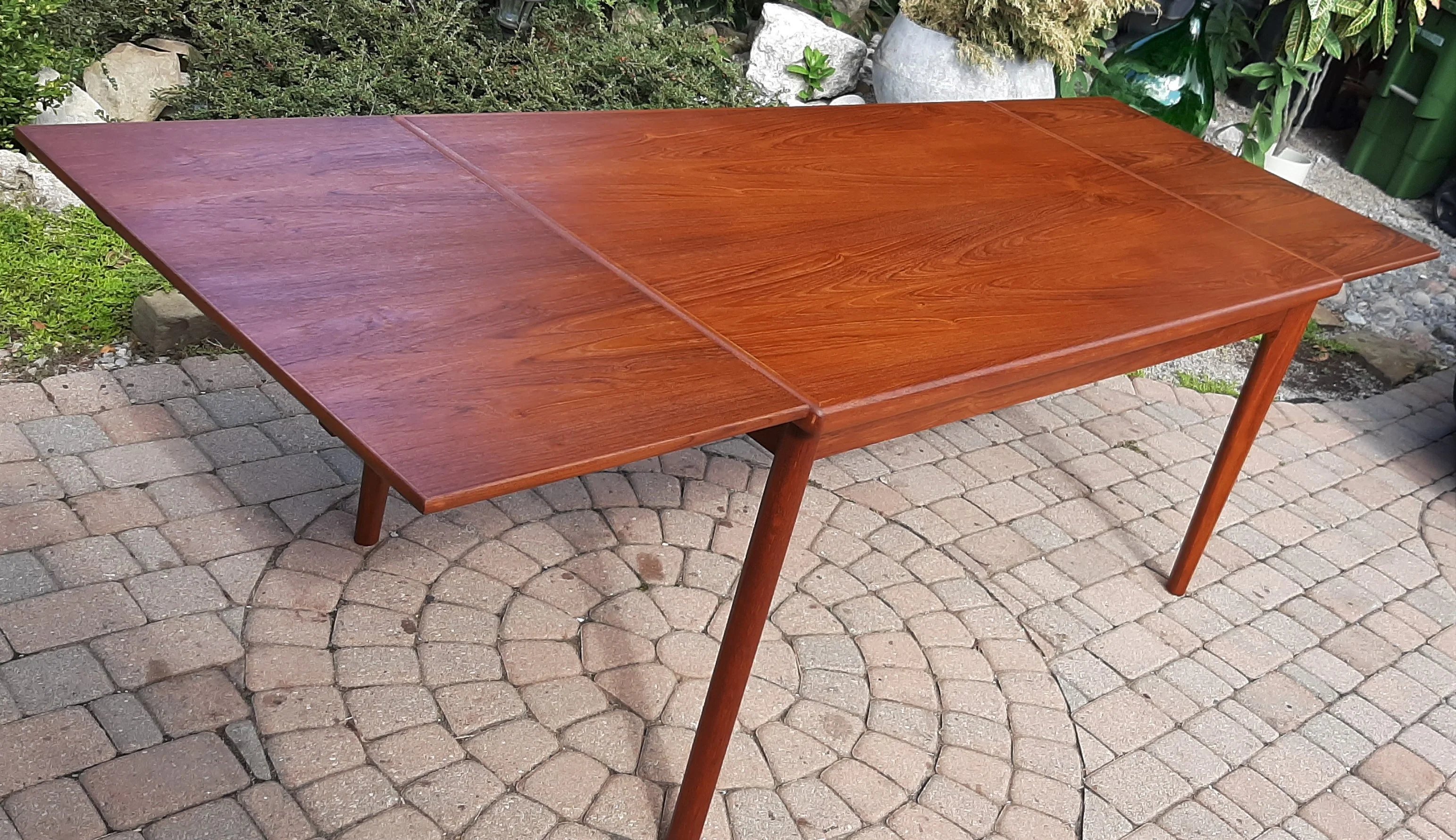 REFINISHED Danish MCM Teak Draw Leaf Table 2 Leaves PERFECT - 57"-96"