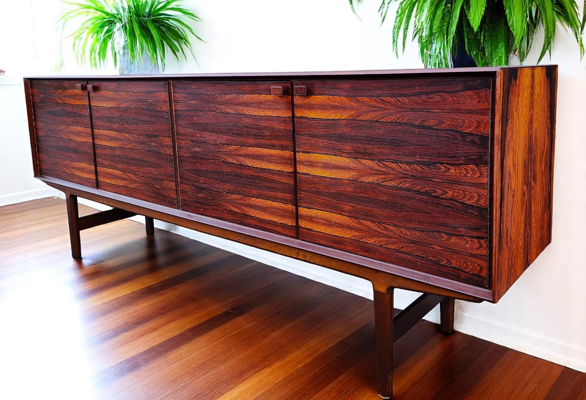 REFINISHED Mid Century Modern Brazilian Rosewood Sideboard Hertug by F. Kayser 86"