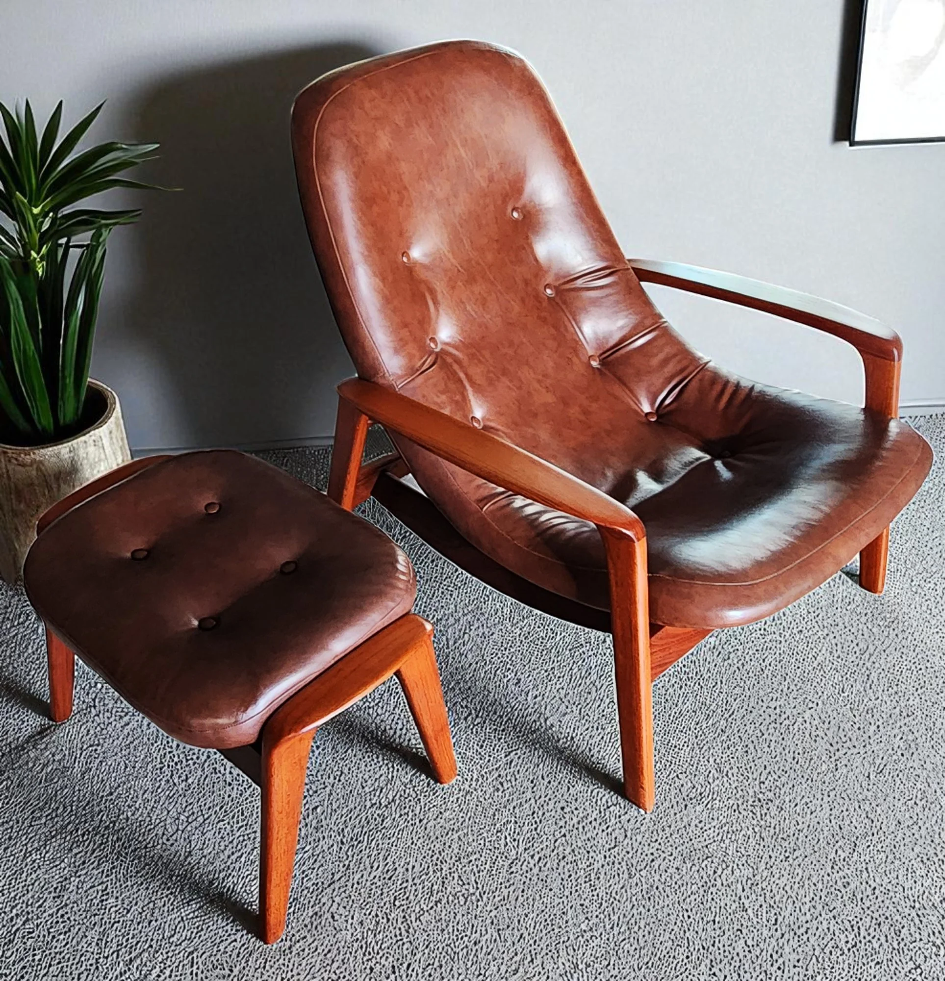 REFINISHED MCM Teak Scoop Lounge Chair & Ottoman by Huber