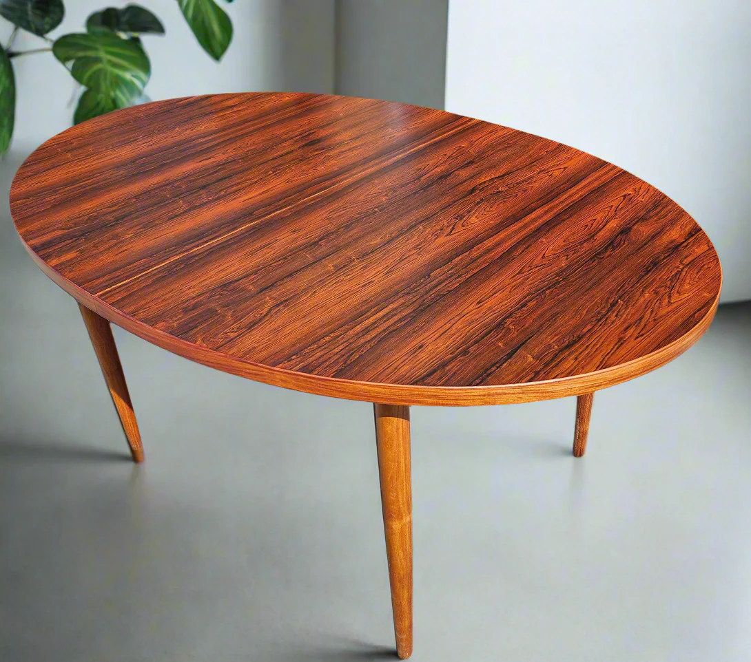 REFINISHED Mid Century Modern Rosewood Table Oval w 2 Leaves 60"-100"