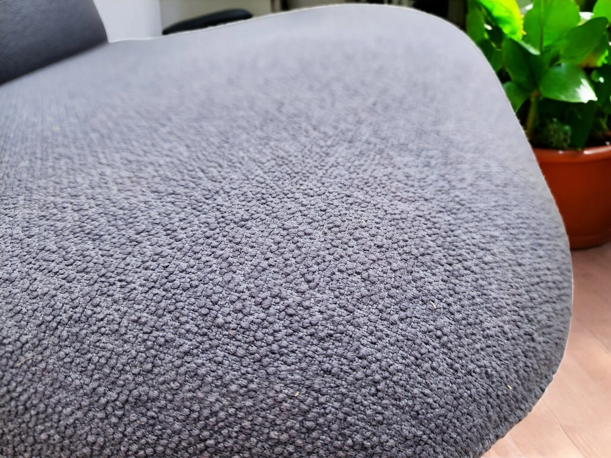 We have taken the chair apart, stripped, sanded and refinished its teak frame with multiple layers of Danish oil.