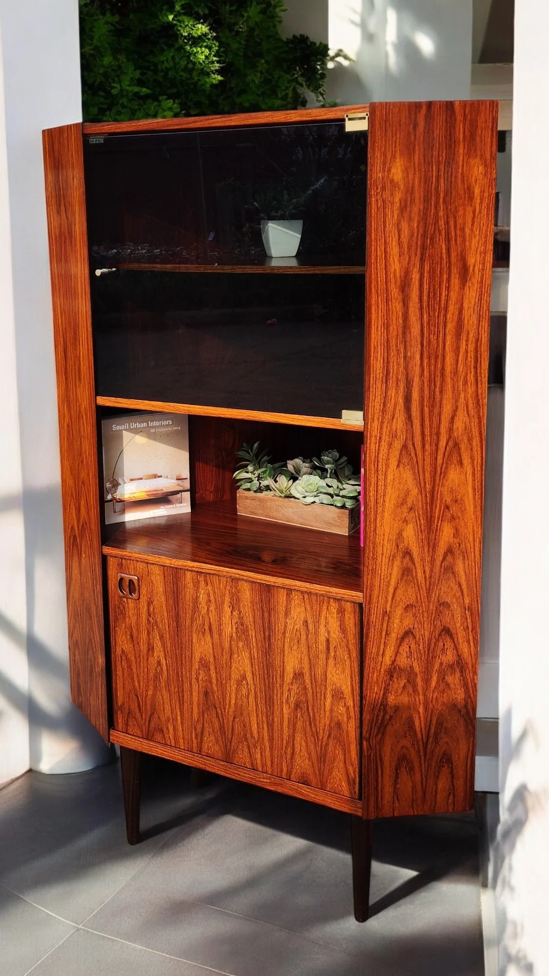 RESTORED Danish Mid Century Modern Rosewood Corner Cabinet