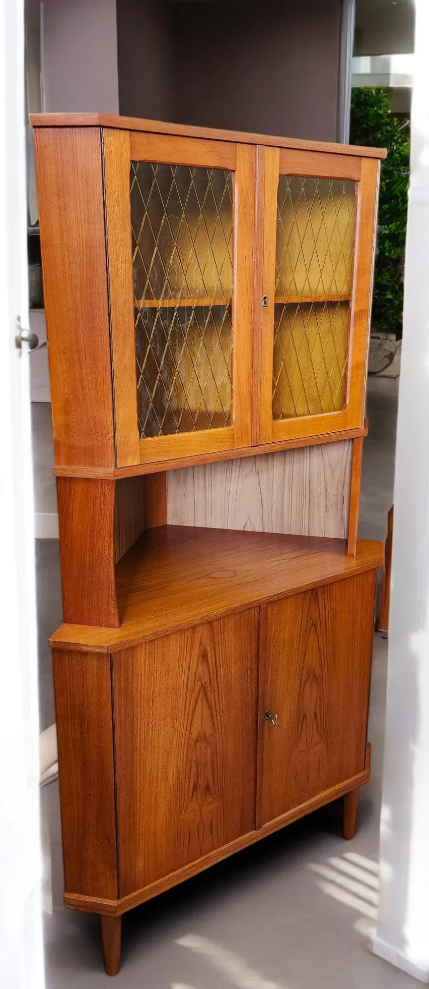 RESTORED Danish Mid Century Modern Teak Corner Cabinet w Bar