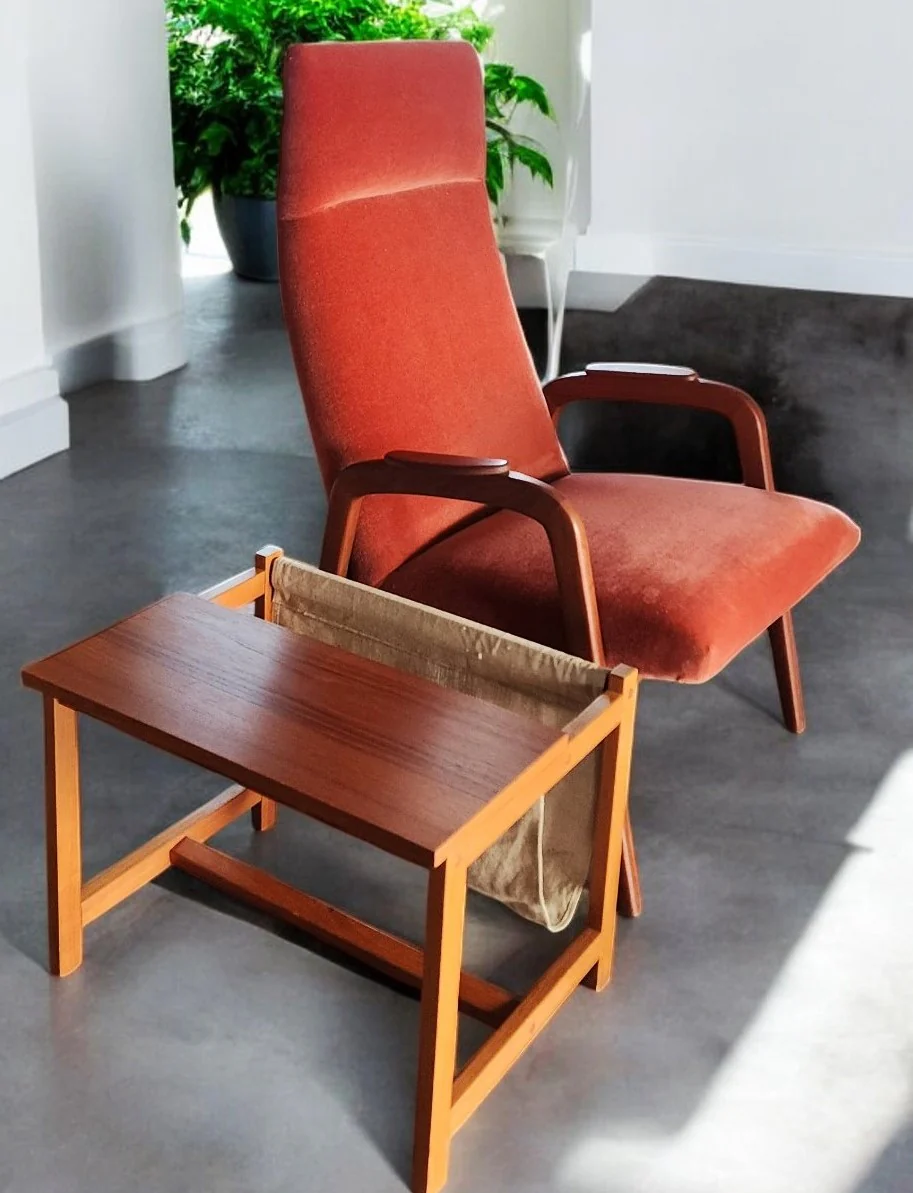 RESTORED Mid Century Modern Teak Accent Table with Magazine Holder